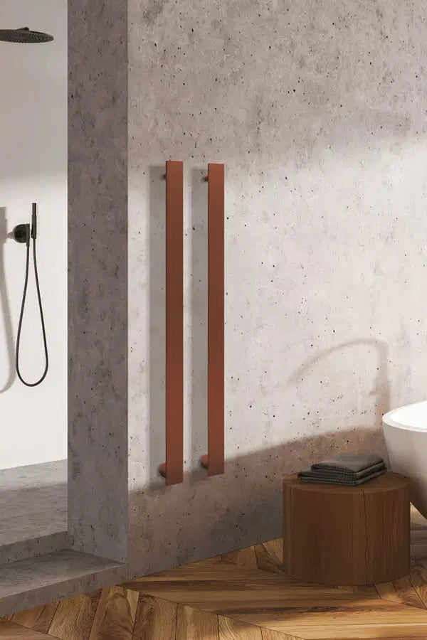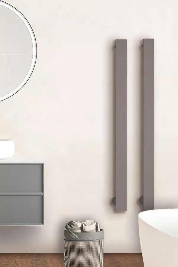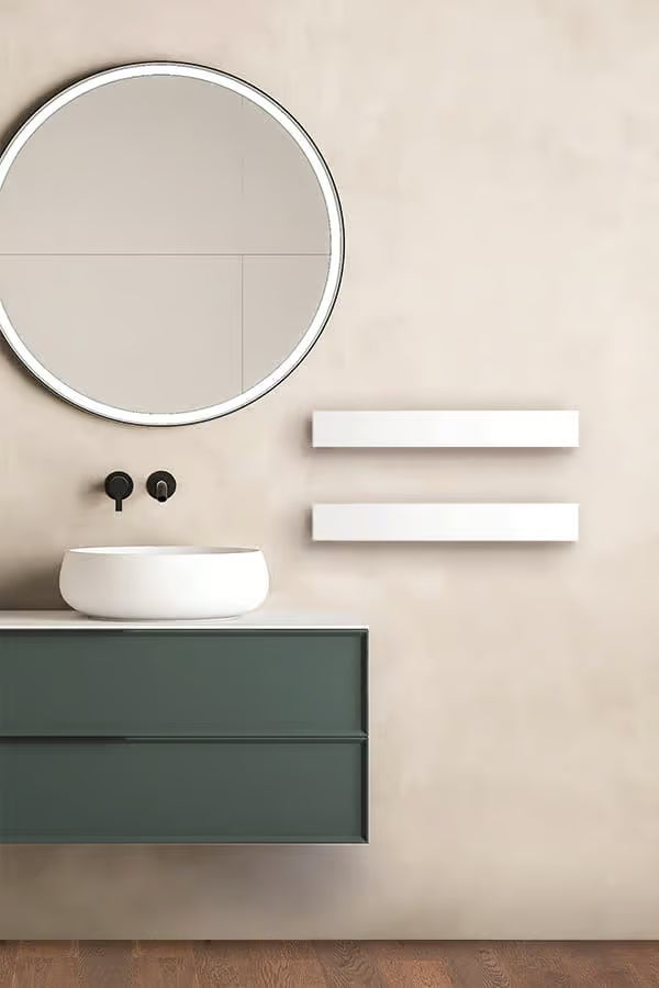 Radiator port-prosop electric pentru baie, cu design minimalist și formă liniară, conceput ca element funcțional discret, integrat în arhitectura spațiului. Modelul HAND se remarcă prin simplitatea geometrică și flexibilitatea de montaj, permițând compoziții libere în funcție de necesitățile spațiului.
