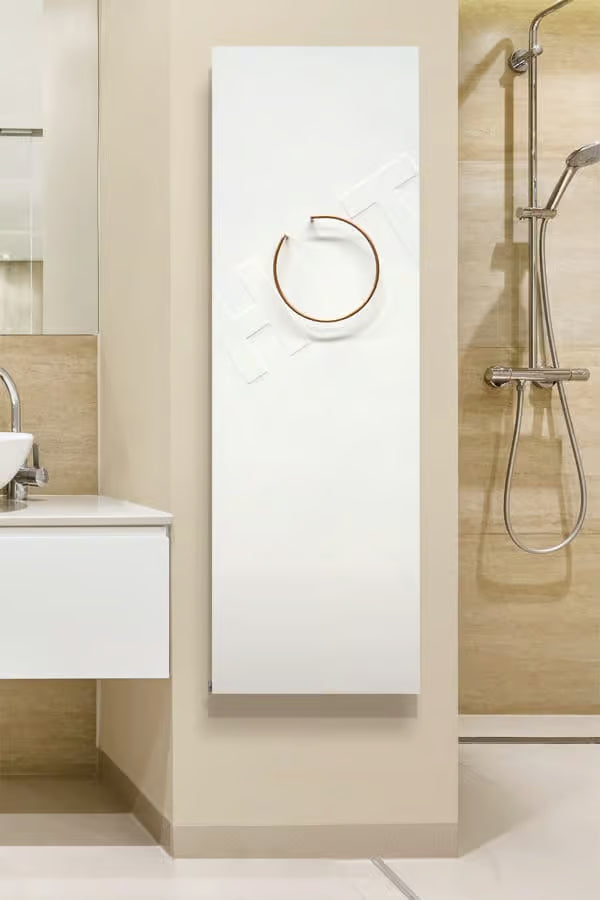 Produsul este realizat cu muchii conice (tapered edges), care accentuează profilul subțire și expresia sculpturală a panoului. Parte din colecția Panels, design Fiorenzo Mussi, HOT este conceput ca element funcțional și decorativ pentru băi contemporane.